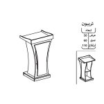 ابعاد این میز شامل ارتفاع ۱۱۰ سانتیمتر، عمق ۶۰ سانتیمتر و عرض ۵۰ سانتیمتر میباشد که فضای کافی برای قرار دادن میکروفن، لپتاپ یا اسناد فراهم میکند. طراحی ارگونومیک و پایههای مقاوم آن، پایداری و راحتی استفاده را تضمین میکند.