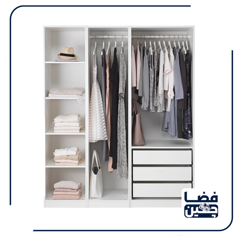 - قابلیت تنظیم ارتفاع: در صورت امکان، قابلیت تنظیم ارتفاع طبقات به شما این امکان را میدهد تا فضای داخلی کمد را مطابق با نیازهای خود شخصیسازی کنید.