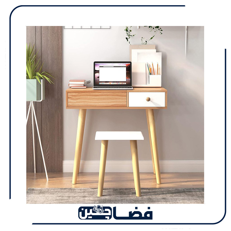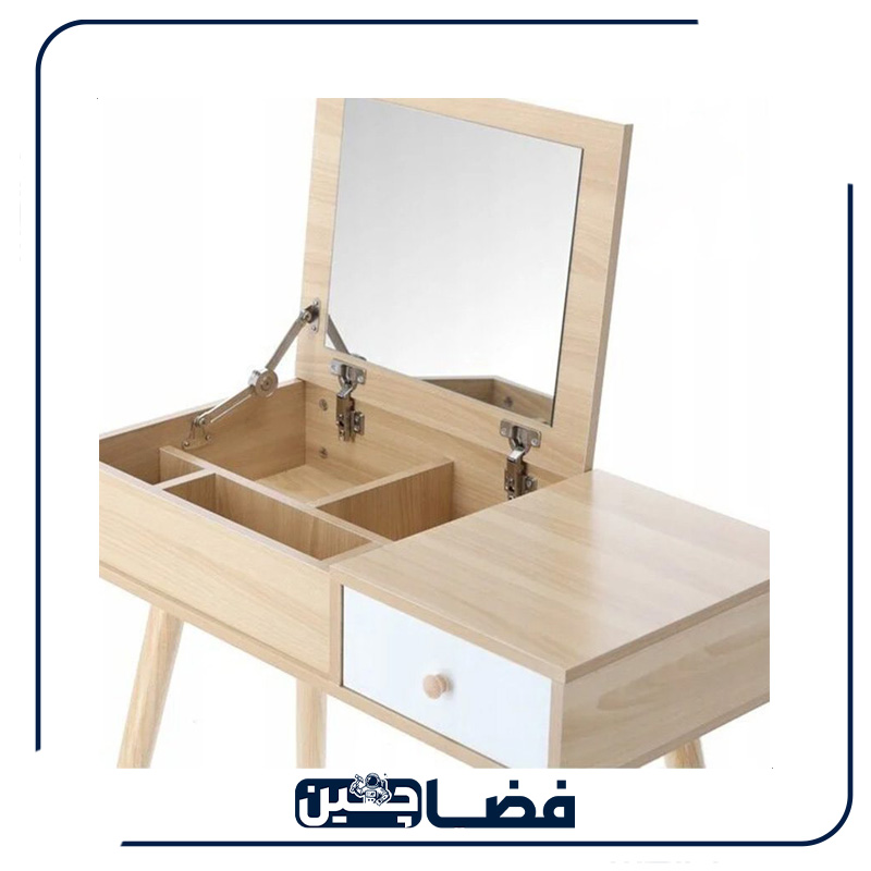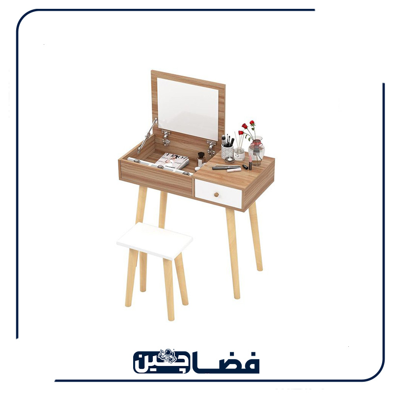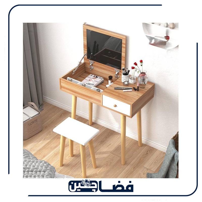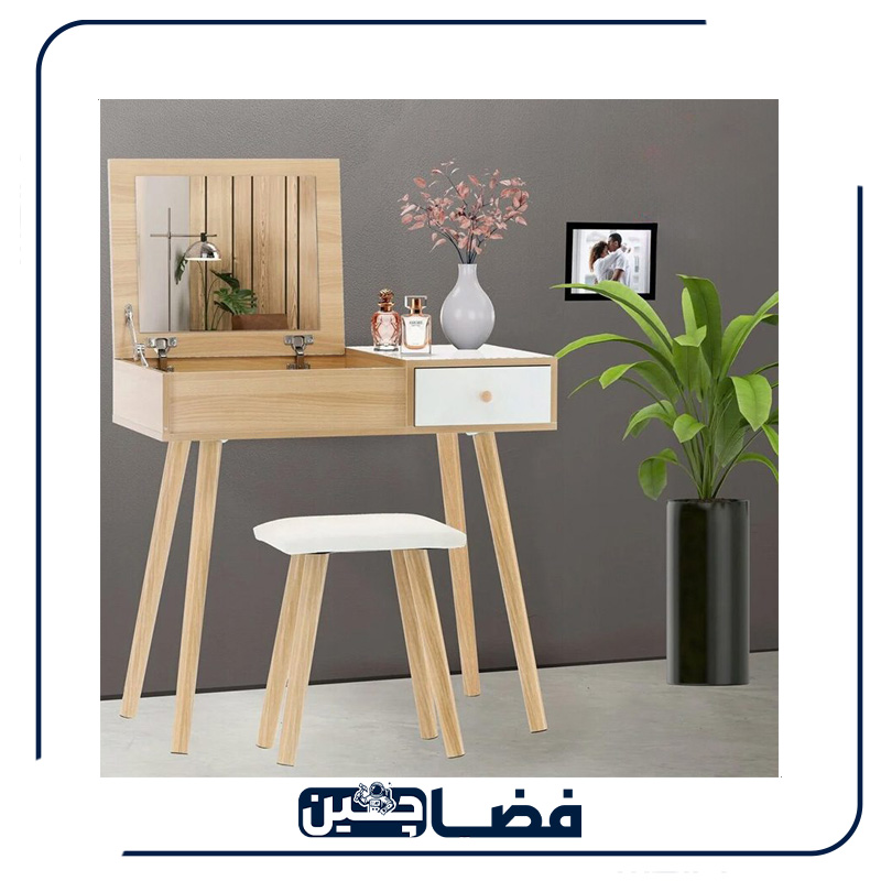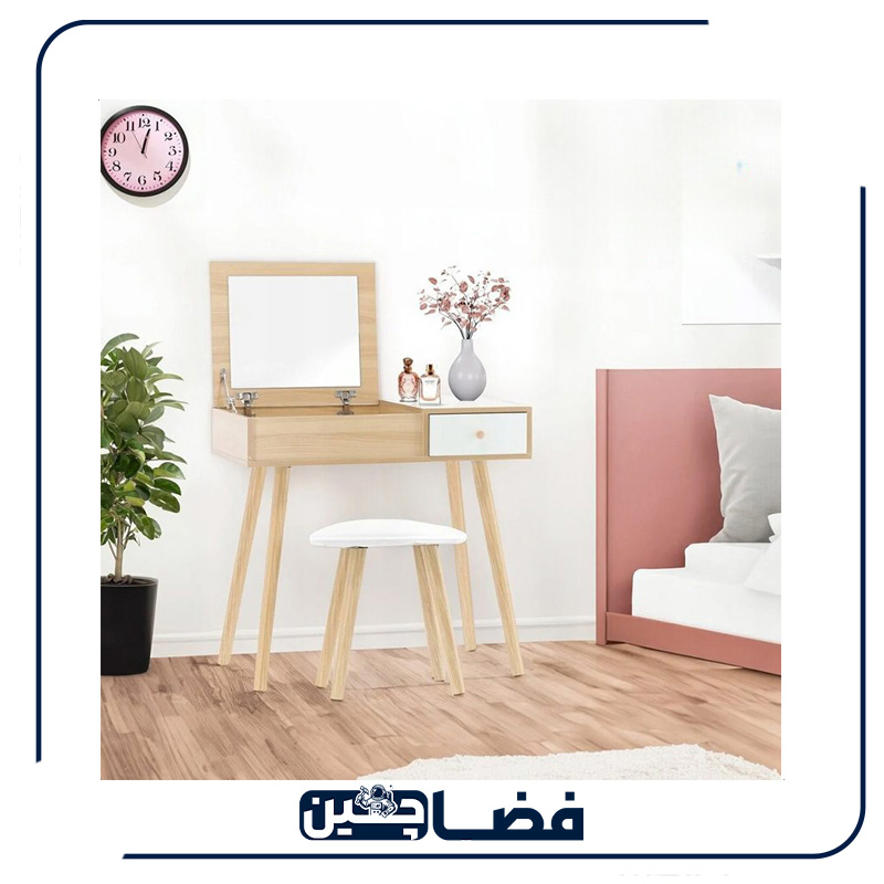 میز آرایش مدل FZ211: زیبایی مینیمال با پاف، آینه و فضای ذخیرهسازی هوشمند