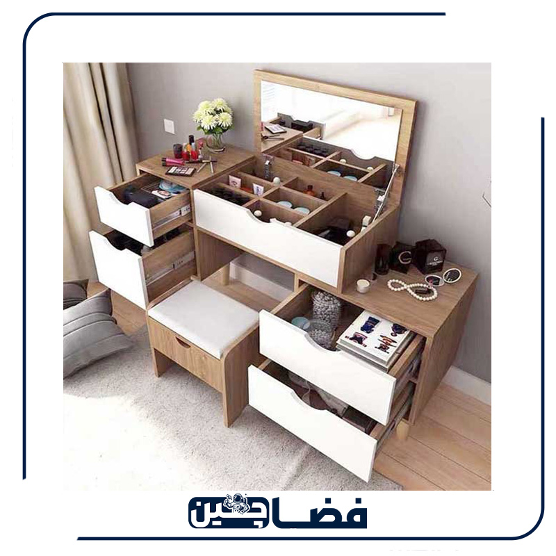 میز آرایش مدل FZ220: مدرنیته و نظم هوشمندانه با آینه تاشو و فضای ذخیرهسازی خلاقانه!