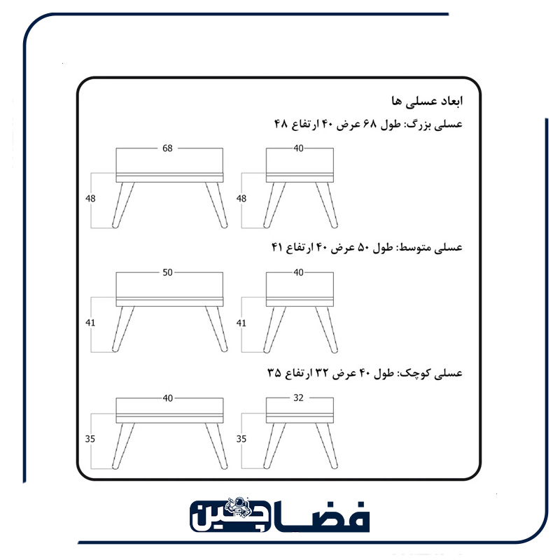 - میز کوچک: با ابعاد طول ۴۰، عرض ۳۲ و ارتفاع ۳۵ سانتیمتر، به راحتی در فضاهای محدود جای میگیرد و کارایی بینظیری دارد.